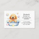Cute dog groomer watercolor illustration of a happy fluffy curly brown golden doodle dog in a bathtub. Great for pet groomer who specialises in dog bathing and grooming. Ready to be personalised with your custom information. Business name, title, address, phone number, and the back your email and facebook and instagram info. There's space enough to add the appointment on the back of the card.