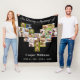 The blanket features a black background, 26 photo collage in the shape of a heart, their name and date.