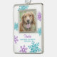 The photo and text on this purple, turquoise (teal), and white snowflake pet dog memorial Christmas photo ornament can be changed. The modern purple and teal snowflake design makes this a pretty and elegant "in memory of" Christmas ornament. Customise the memorial verse, name and years lived. Use it for a pet dog or pet cat.