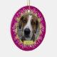 The text and photo on this pet dog memorial Christmas photo ornament (round shape) are easy to customise. The pink glitter look design and golden frame and snowflakes makes this a pretty and elegant "in memory of your pet" Christmas ornament. On the back, you can customise it with the name of your loved pet, as well as customise the memorial verses and years lived. To change the text and photo use the personalise options. For more extensive changes to the ornament, including changing the font, font size, font colour, text placement, picture size and/or picture placement, use the customise it option.