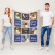 Celebrate your best friend with a custom pet memorial photo collage blanket in a modern retro navy classic blue, cool brown, and grey beige colour block design. This unique pet memorial dog photo keepsake blanket is the perfect gift for yourself, family or friends to honour those loved .