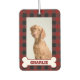 Pet Dog Photo & Name on Red & Black Buffalo Plaid Car Air Freshener