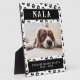 Pet Dog Photo Paw Prints Memorial Dog Loss plaque. This dog loss memorial plaque has a photo of a pet, the pet`s name and a pattern of black dog paw prints. You can change the quote Forever in our hearts. Personalise with your dog or any other pet photo, your dog or pet name and dates.