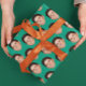 Simple template gift wrapping paper with an emerald green green background. Upload a tightly cropped png of any object with the background removed, and left transparent (many phone applications available, even better now with AI background removing apps) and you can be wrapping gifts in the recipient's face, your cat, or any object you'd like.