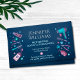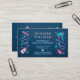 The two-sided card features a deep navy background with soft gradient accents and delicate, watercolor-style grooming tools — including clippers, brushes, scissors, and shampoo bottles. The front highlights your name, service title, and a customisable tagline, clearly communicating your mobile grooming offerings. On the reverse, you’ll find organised contact details (phone, email, social media) and a curated list of services such as haircuts, nail trimming, and puppy grooming. Sparkling star accents and a note about flexible hours add charm while making the card visually engaging and informative.