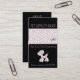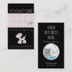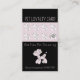 A charming vertical pet grooming loyalty card. An original design with sweet balloon dogs without colour marks where you vill fill out each visit. On front text and cute balloon dog in light pastel pink. On the back white text on black background with a cute cartoon of a dog and a cat in a bath tub.