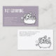 Modern, trendy pet grooming services business card featuring cartoon dog in the bathtub icon on a purple color background. Personalize with your contact details on the front and additional information on the back of the card.