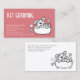 Modern, trendy pet grooming services business card featuring cartoon dog in the bathtub icon on a peach color background. Personalize with your contact details on the front and additional information on the back of the card.