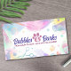 Promote your grooming services with this charming and original business card design, perfect for pet groomers, spa salons, or mobile grooming businesses. Featuring a professionally illustrated watercolor style, this card adds a warm, approachable feel to your brand while keeping things clean and professional.