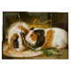 This design features a painting by the English artist James Ward (1769–1859). It depicts two guinea pigs feeding. One of them is eating from a lettuce leaf, while the other guinea pig appears to be eating some form of mashed food, and there is also a small segment of apple on the plate that they are sharing. Their hay bedding can be seen behind the two animals as they feed. The original artwork was painted by James Ward in 1843.