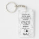 Keychain is double sided , one side . Quote " Those we love don't go away, they walk beside us everyday, unseen unheard, but always near. still loved still missed, and very dear. "