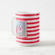 This cute mug features a photo of Olive, a cute Labrador mix surrounded by red and white stripes. Photo and initial can be customised.