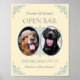 Personalise your chic butter yellow chic wedding with an open bar sign. Add photos of your dogs, cats or any pets and personalise all of the text to read whatever you like. Perfect for an elegant, old money with vintage charm wedding theme for the chic, classic and timeless couple. Designed by Simple Desert Designs Studio for Zazzle. Message us for custom colours to match your exact wedding theme.
