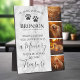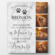 Elegant pet tribute photo plaque featuring a stylish marble background, a 4 photo collage of the pet your remembering, a sympathy quote that reads "when someone you love becomes a memory, those memories become treasure", paw prints, the name of your dog or cat, and their birth/death date. This modern animal memorial plaque is easy to customise, and is the perfect keepsake for you, your family, or friends to honour those special pets who are no longer with us.