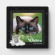 Three sizes available shown is 5x5. We have a square 5x7 and an 8x10 in our store as well. When we lose a cat it's like losing a member of the family and we need to mourn and remember that pet as we do any loved one we've lost. The artist, who is a cat lover herself, has created these Angel Pet Memorial Photo Plaques with a lovely a lovely starry sky background. On the right corner you put their name and the years they were with you. Upload your cat's photo and you have a wonderful photo memorial to keep anywhere you need to see your beloved pet.