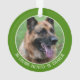 This ornament is a loving memoriam to your dog or cat. It has a green border around your pet's photo and can be personalised with the pet's name. You can alter the wording if you wish. It can be hung in your home or office, or on a Christmas tree. In loving memory, to remind you of a loved dog.