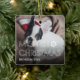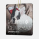 Personalized pet christmas ornament featuring 2 photos either side, the saying "my first christmas" in a modern white outline font, a paw print with a cute heart cutout, their name, and the year.