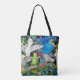 Original fine artwork of colourful pet parrots by artist Carolyn McFann of Two Purring Cats Studio printed all over a quality tote bag for parrot fans.