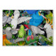 Original fine art design of colourful pet parrots from cockatoos to macaws, conures, lovebirds, cockatiels and more from designer Carolyn McFann of Two Purring Cats Studio.