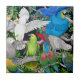 Original fine art design of colourful pet parrots from macaws to African greys by artist Carolyn McFann printed on a quality ceramic tile for parrot lovers.