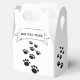 Custom favour boxes in black and white. Dog party decor idea. Edit name to customise.
