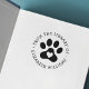 From the library of or this book belongs to rubber stamp featuring a pet paw print with a heart. Custom text and name in a whimsical serif font.