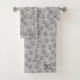 Pet Paw Print Pattern Monogram Grey Bath Towel Set