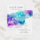 Earring jewellery product display card with your brand in a modern script font and a purple and aqua blue watercolor splash with a white paw print animal track. Customisable text and logo on the back.