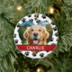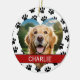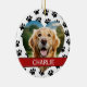 Create your own custom photo personalised pet photo ornament this holiday season. Features paw print pattern background.