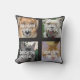 Pet photo collage with your custom dog or cat (or any photo) photos. Black frame stays on top. Just select each photo image and replace with your own, use plus or minus buttons to adjust sizing. Change the solid colour on back side of pillow if you like. Makes a great gift to show a mini photo album of your family of animal companions!