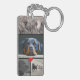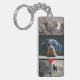 Pet photo collage keychain for pet lovers- Create your own photo keychain that is the same on both sides. Add your favourite 4 pet photos, 2 rectangle shape photos at the top and two square pictures on the bottom. A red, puffy look heart is overlaid on the intersection of 3 photos. With black frame edges, which may be changed to any colour you prefer. Photos work best that are the same shapes. Not just for animal lovers, this custom photo keychain is a cute way to show off your favourite people, family members, or memories as well. Customise if you like with text. We have more pet photo gifts in our Zazzle.com/angela65* shop, as well as more photo keychain styles.