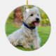 Personalise this ornament with your dog's photo, on the other side a grey paw print on a light blue background and the quote "Dogs leave paw prints on our lives and our souls, which are as unique as fingerprints in every way." A customised pet dog Christmas tree decoration is great gift for a dog lover or a pet parent.