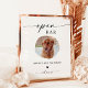This beautiful Open Bar Sign features a beautifully modern minimalist elegance to display at your wedding or special event. Easily edit most wording to match your style. Text and background colours are fully editable —> click the "Edit Using Design Tool" button to edit!