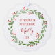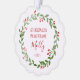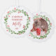 Celebrate your pet's first Christmas in his or her new forever home with this keepsake ornament, featuring a watercolor Christmas wreath surrounding the words "1st Christmas in My Forever Home," along with your pet's name and the year in whimsical red printing and handwriting fonts. Customise the reverse side with a favourite photo of your pet, encircled by the same wreath.