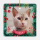 In this design you can add a custom pet cat or dog photo or pet of any kind. The design features a border of hand painted watercolor botanical florals in reds and greens and a red banner where you can add your pet's name. See the whole matching collection.