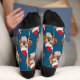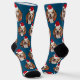 Pet Photo Pattern Blue Red Santa Hats Christmas Socks