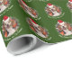 Pet Photo w Santa Hat Snowflakes Green Christmas Wrapping Paper