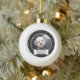 Pet Photo with Dog Bone - black white polka Ceramic Ball Christmas Ornament