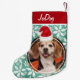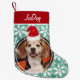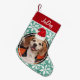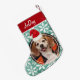 Pet Photo with Red Santa Hat Green Snowflakes Small Christmas Stocking