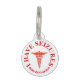 A white caduceus on a red and white circle rests on a solid white background that has custom red templates for your personalised wording.