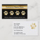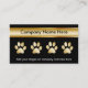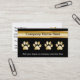 Pet service business cards with modern design that includes four gold coloured pet paw prints, a gold accent element and smart two side design with text space to personalise and customise for your pet theme business.