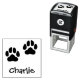 Cute personalised pet signature self-inking stamp featuring two paw prints and a name. Personalise by replacing the sample name Charlie with the name of your pet or with any custom name you wish to use.