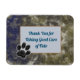 Do you have someone who cares for your pets when you are on vacation or someone who walks your dog daily? This appreciation refrigerator magnet features a swirled blue and gold abstract pattern that is elegant and resembles a marble pattern. A solid light blue and gold square is centred on this magnet and provides the background for your words of appreciation. A black paw print is featured across the lower corner of the centre square. "Thank you for taking good care of Fido" can easily be personalised with your pet's name.