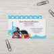 Original Schnauzer drawing and pet business card design by Andie of Off-Leash Art. Great layout in cool happy colours like blues pinks and reds for pet sitters, pet care professionals, and pet boarders. Customisable.