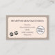 Make a lasting impression with a custom pet sitting business card that showcases your love for animals and your reliable care services. Perfect for dog walkers, cat sitters, and all-around pet care professionals, this card features eye-catching designs, essential contact details, and space for your credentials or specialisations. Whether you're networking at local events or leaving your card with happy clients, it's a convenient and personal way to grow your business and build trust with pet parents.