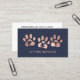 Elegant pet sitting services rose gold & navy business card featuring paw print in rose gold colour on a navy background. personalise with more details on the back.