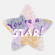 It appeared as you can see, that these stickers would be printed on glittery, glossy sticker paper. They are not thus they don't quite catch light the way I had hoped because every kid I know loves glittery stickers. The quality of the sticker is good though, I am happy with the print job just wish it were a truly glitter star. Print quality and stick paper is great, durable! The print itself is an image of glittered paper instead of being glittered paper itself which is my only complaint, yet it seems to pass as a glitter paper without the actual gloss and sheen of glitter, which I had hoped for in this product.