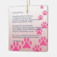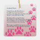 Memorialise your pet's memory with this square ornament. Hang in a place where they can be remembered. The comforting words of this poem should help anyone who is grieving the loss of an animal. Animals are such a part of our lives that it is a difficult moment when they pass. The prose here allows us to picture them in a perfected form and understand that they are always with us. This design is pink for a female animal.