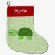 A cute cartoon of a turtle design on a stocking with room to personalise for your pet turtle. They deserve a gift from Santa too! Original design by Night Owl's Menagerie, 2017.