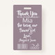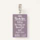 Personalise Flower Girl "Petal Patrol" agent badge colours lilac, grey and white with photo in a mandala lace look frame design. Thank you note on back.
